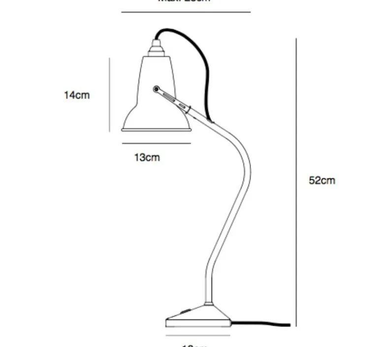 Cette lampe à poser mesure 52cm de hauteur et son abat-jour, 13cm de diamètre. Un luminaire peu encombrant avec une base mesurant 13cm de diamètre.