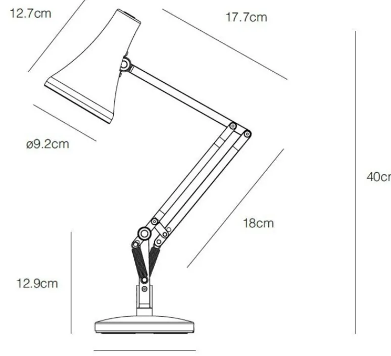 La lampe de bureau 90 mini mini mesure 32cm de hauteur pour 38cm de longueur maximum. Elle existe en plusieurs coloris.