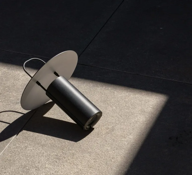 Ray s’inspire des anciennes lampes de mines. Sa silhouette cylindrique est façonnée en métal et comporte une poignée supérieure permettant ainsi son transport à l’extérieur.