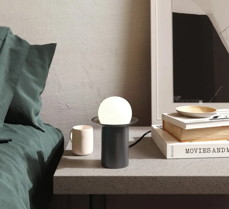 Avec sa base cylindrique en graphite satiné, son globe en verre opalin et son éclairage à 360°, elle apporte une lumière douce et diffuse, idéale pour créer une ambiance chaleureuse dans un salon, une chambre ou un bureau. Son style épuré s’intègre parfaitement dans des intérieurs élégants et sophistiqués. Associez-la à des éléments en métal ou des teintes sombres pour accentuer son côté chic, ou combinez-la à des matières naturelles pour jouer avec les contrastes.