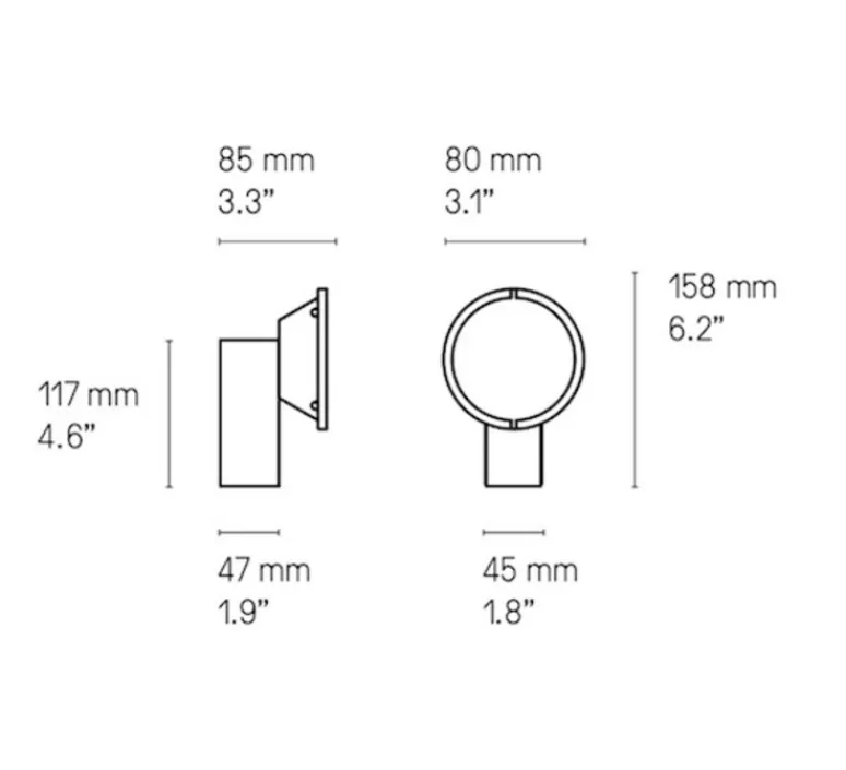 La lampe mesure 23 cm de hauteur, 11,2 cm de longueur et 14,5 cm de profondeur. Le module LED intégré diffuse 2700K et 1100 lumens. Possède un câble textile noir de 2m. Bouton de variation au dos de la lampe.