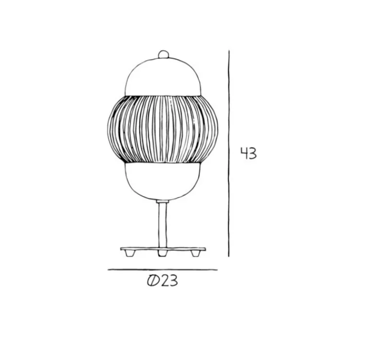 La lampe à poser mesure 23 cm de diamètre et 43cm de hauteur. Le câble blanc mesure 2,5 m.