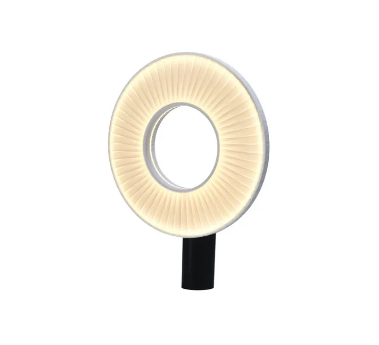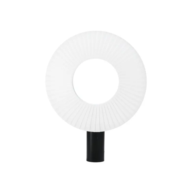 Iris est un soleil d’intérieur. Sa lumière est puissante, douce et diffuse à la manière d’un astre. Elle se compose d’un abat-jour en ruban blanc et d’une structure en métal noir qui contraste avec la clarté du diffuseur. Sa base cylindrique noire assure la stabilité de l’ensemble.