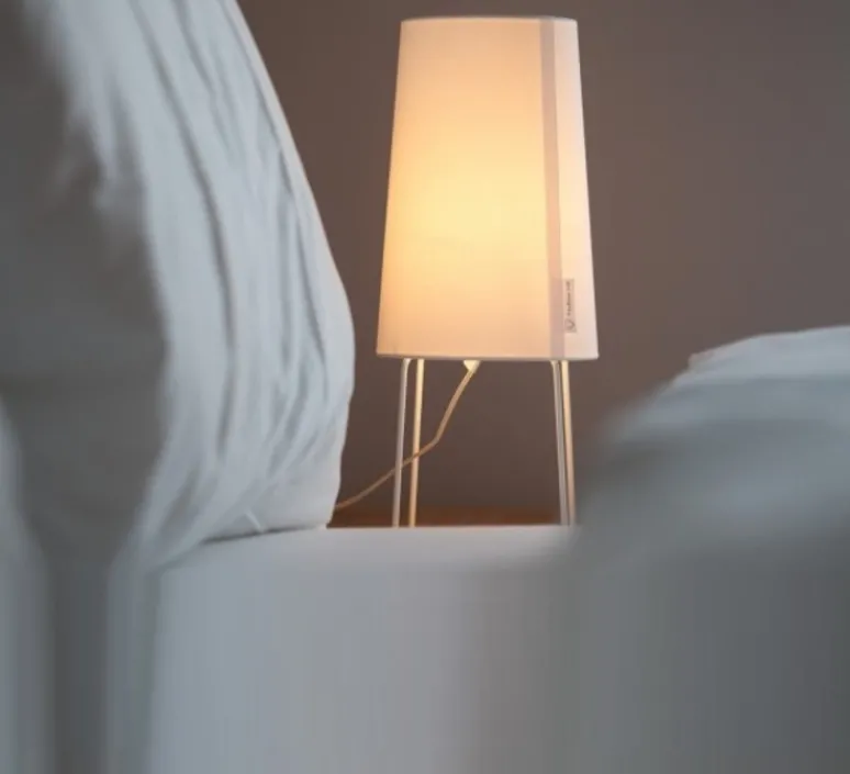 Plusieurs coloris sont disponibles. Ici, la lampe est blanche.