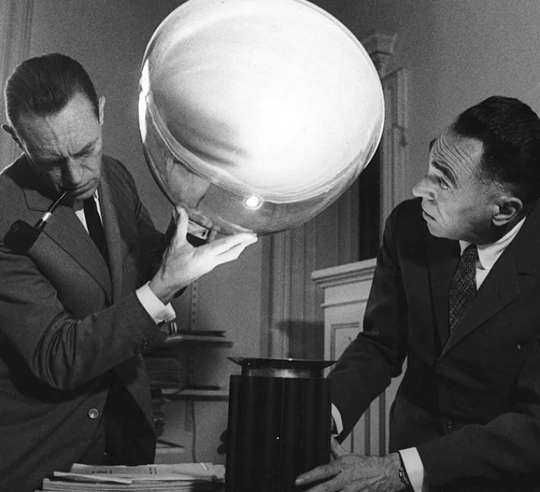 Taccia PMMA est une lampe à poser dessinée par les frères Castiglioni en 1962 pour Flos.