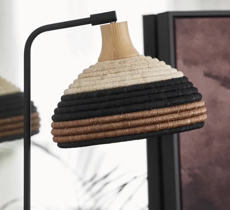 Grass se compose d’un corps en métal noir et d’un abat-jour pivotable tissé de fil d’abaca. Prenant ses inspirations dans l’art ancestral qu’est la vannerie et dans des camaïeux issus de paysages, la lampe à poser Grass se place dans chaque intérieur, dans une entrée, une chambre ou un salon.