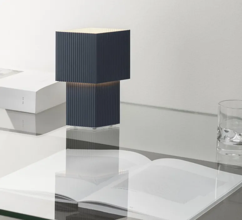Découvrez la lampe de table rechargeable Romb Mini en bleu de la maison Pholc.
