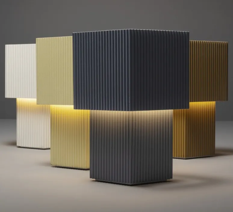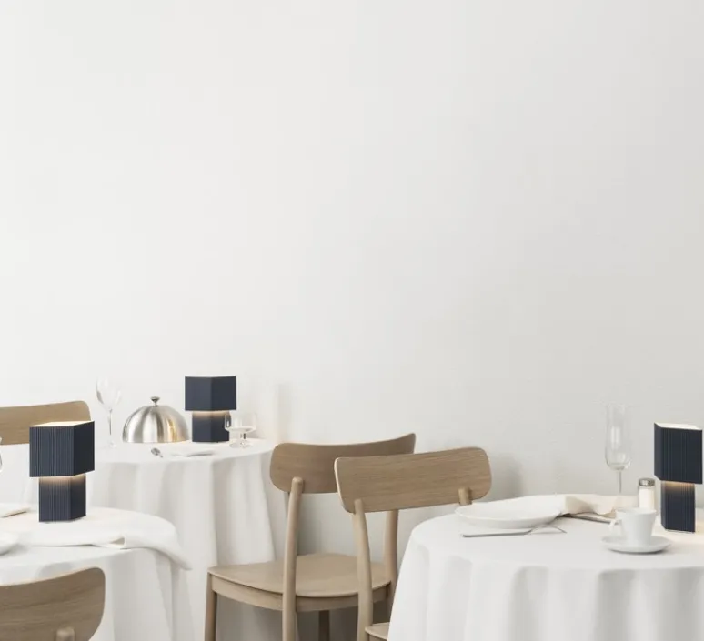Romb se présente comme une œuvre artistique et ingénieuse de design. Elle tire son inspiration de deux formes en carton ondulé empilées l’une sur l’autre, créant ainsi une apparence géométrique intrigante. La forme compressée et la texture ondulée de Romb accentuent la sensation de légèreté du carton, jouant habilement avec la perception d’une lampe. Elle s’adapte tout aussi aisément et suscite autant d’intérêt dans un environnement domestique que dans un hall d’entrée. La collection Romb offre trois tailles différentes, dont la plus petite est rechargeable.