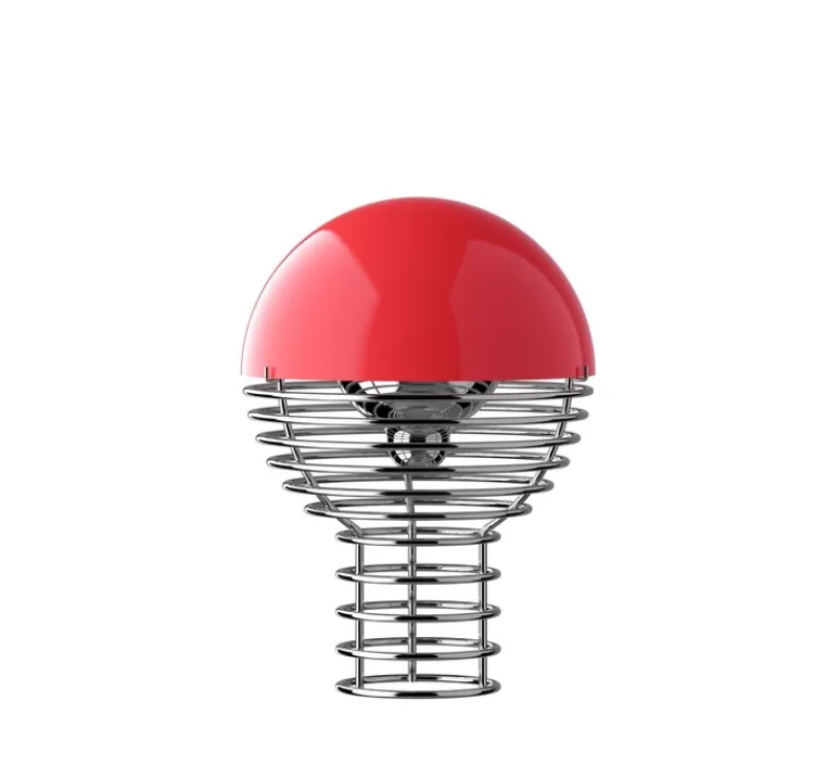 Découvrez la version baladeuse de la lampe à poser Wire en finition rouge, dessinée par Verner Panton.