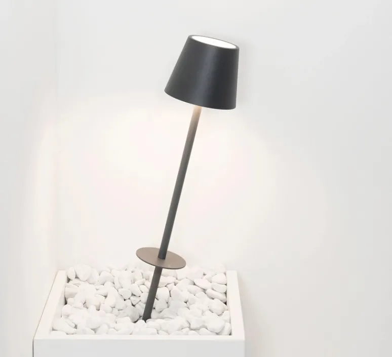 La Poldina se caractérise par sa forme moderne et minimaliste lui permettant de s’adapter à tout type d’espace. En effet, la lampe est doté d’un piquet la permettant de la planter directement dans un sol extérieur.