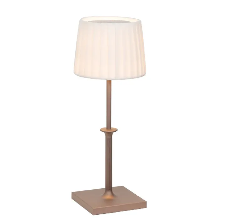 Avec sa forme cylindrique et sa finition bronze, cette lampe affiche un style graphique et raffiné. Son abat-jour en tissu plissé associé à une base en aluminium peint apporte une touche chaleureuse et contemporaine à tout type d’intérieur. Idéale sur une table de chevet, un buffet ou en centre de table, elle diffuse une lumière douce qui contribue à créer une ambiance accueillante et élégante.