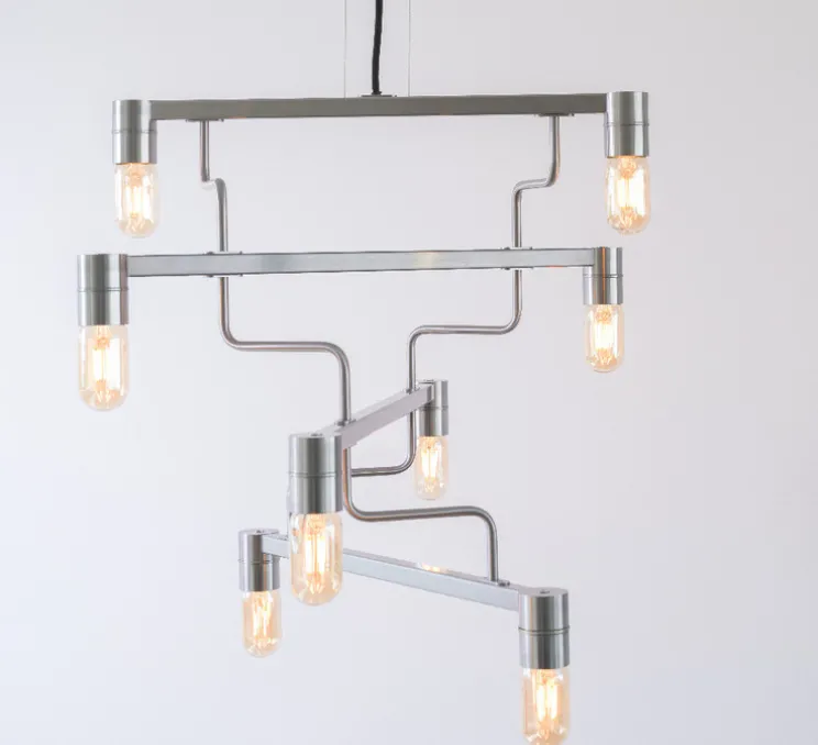 Avec sa structure composé de bras en laiton finition gris métalisé et ses ampoules exposées, ce luminaire impose une présence équilibrée et graphique. Le chandelier Kennedy s’intégrer aussi bien dans un intérieur contemporain que dans un espace plus classique, en apportant une touche sobre et affirmée. Installé au-dessus d’une table de repas ou dans un salon, ce chandelier transforme la lumière en une pièce maîtresse saisissante et contemplative pour n’importe quel espace.