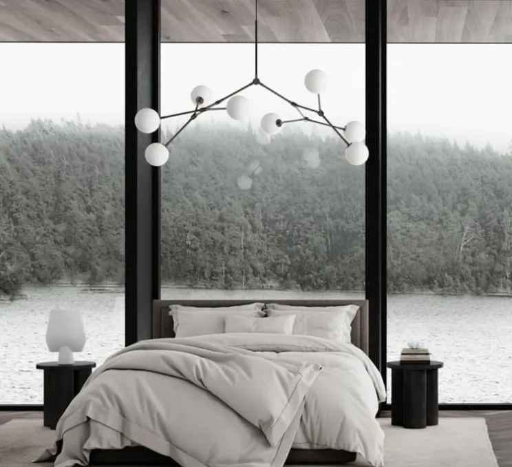 Inspiré du modernisme danois et des icônes intemporelles… Ce lustre au style contemporain conserve le charme des années 50. Très élégant et graphiquement épuré ce lustre assure une diffusion de la lumière très agréable et optimale grâce à ses bulles en verre opalin. Les abat-jours en forme de bulle épousent parfaitement les branches articulées pour un éclairage naturel et agréable. Un luminaire parfait pour créer une ambiance chaleureuse dans tous les intérieurs.