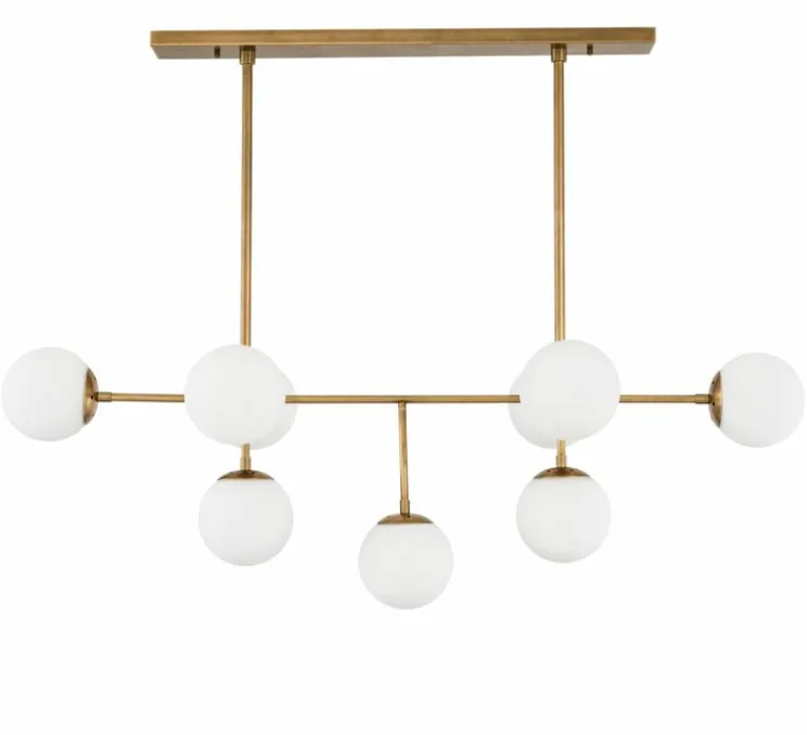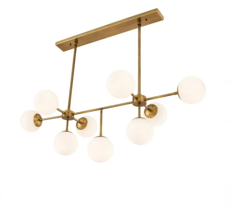 Ce lustre au style contemporain diffuse une lumière divine dans votre intérieur. L’armature en finition laiton antique contient 9 abat-jour en forme de globes en verre blanc pour éclairer chaque coin de la maison. Dans un salon, une salle à manger ou une entrée, Lux sait créer l’ambiance parfaite dans votre maison et apporte une touche luxueuse.