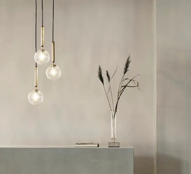 Sofie Refer s’est inspirée de la nature scandinave. La suspension Miira 3 aux formes pures nous dévoile trois sphères en verre soufflé transparent suspendues par une tige en laiton au travers desquelles la lumière se diffuse gracieusement. Une véritable pluie de lumière, la suspension Miira nous rappelle extrêmement bien les beautés de la nature.
