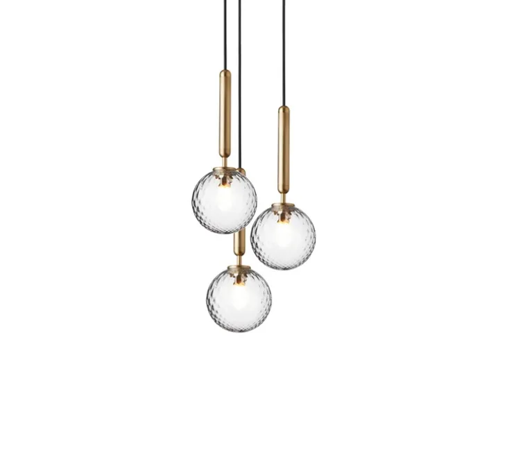 La designer Sofie Refer dévoile ce sublime lustre scandinave Miira 3 de coloris laiton et transparent pour la maison danoise Nuura.