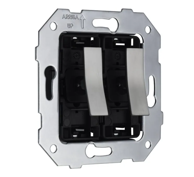 Ce mécanisme double interrupteur poussoir est conçu pour offrir une utilisation intuitive et pratique, permettant un contrôle précis de vos luminaires. Fabriqué en aluminium de haute qualité, il garantit durabilité et fiabilité. Conception : Espagne.