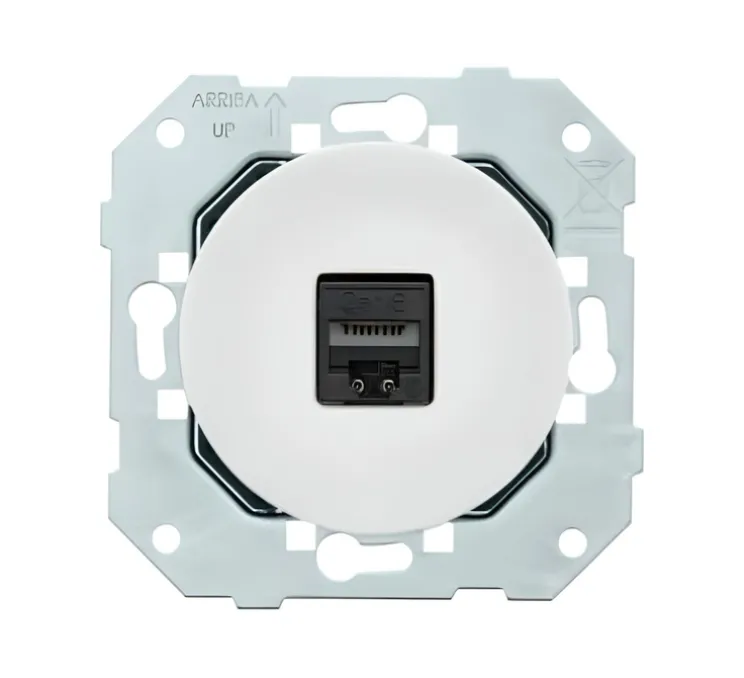 Ce mécanisme mesure 7,1 cm de côté et 7,1 cm de hauteur, et est spécifiquement conçu pour accueillir une prise RJ45, garantissant une connexion réseau fiable et stable. Sa finition en blanc glossy assure non seulement une allure élégante mais aussi une résistance accrue. Conception : Espagne.