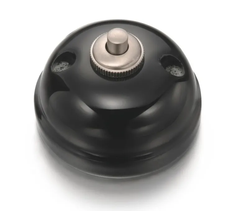 Ce modèle poussoir, réalisé en porcelaine noire, représente une pièce maîtresse de la gamme, combinant utilité et charme rétro.