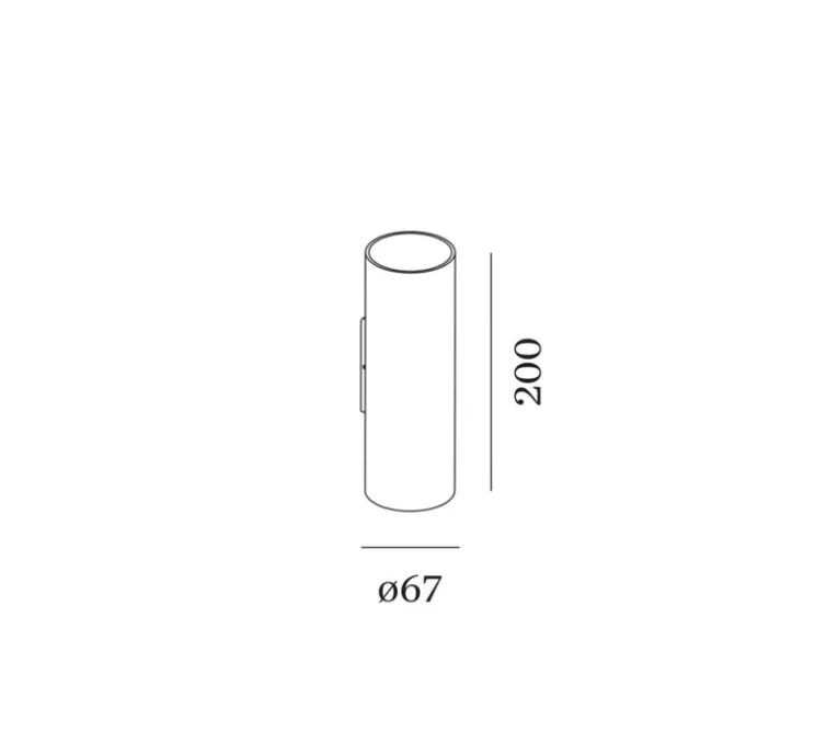 Les dimensions de l’applique murale sont de 20 cm de hauteur et 6,7 cm de diamètre. Disponible en différents coloris (noir, blanc, cuivre et aluminium brossé) et en différentes tailles avec ou sans le système LED.