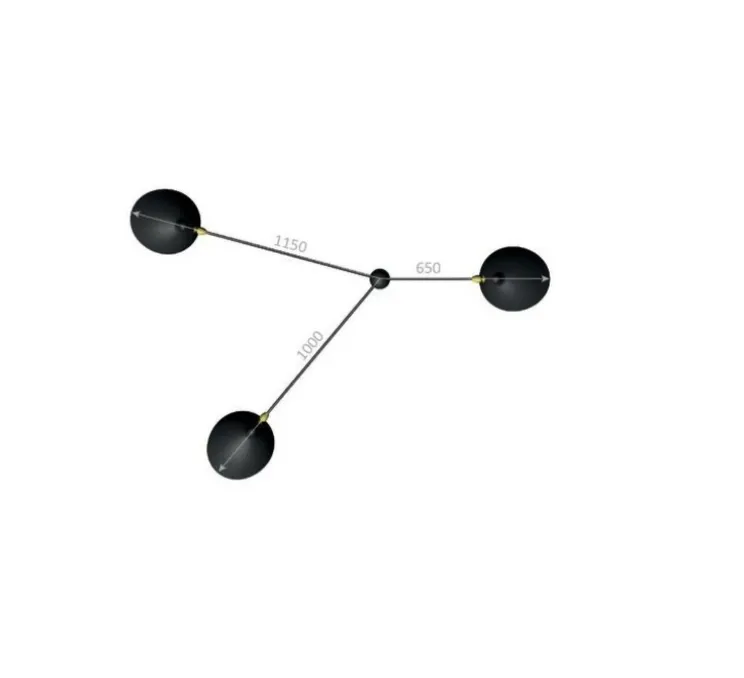 Son corps est en acier, les rotules en laiton sont pivotantes à 270° et les réflecteurs en aluminium sont orientables à 55°. L’intérieur des réflecteurs est blanc brillant pour une lumière diffuse et agréable. Le plafonnier à 3 bras pivotants est disponible en blanc sur demande.