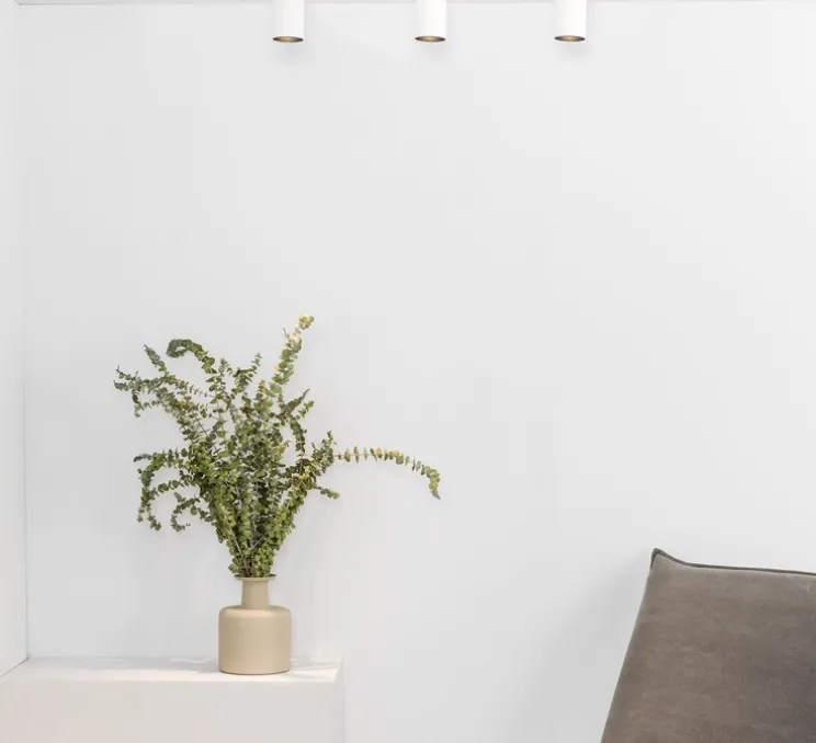 Voici le plafonnier Fost down 17°, finition blanc mat, de la collection architecturale de la célèbre maison espagnole Faro.