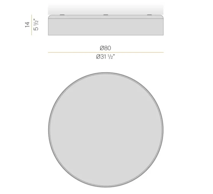 Le plafonnier mesure 80cm de diamètre et 14cm de hauteur.