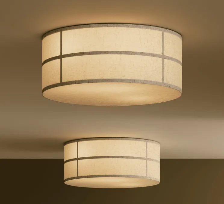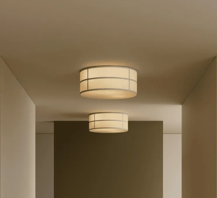Le plafonnier Hashira utilise une source lumineuse non incluse, offrant un éclairage diffus à 360 degrés avec un réflecteur fixe. Bien que non dimmable, il maintient une qualité d’éclairage stable et agréable. Sa structure en acier et lin assure une durabilité et une élégance intemporelle.