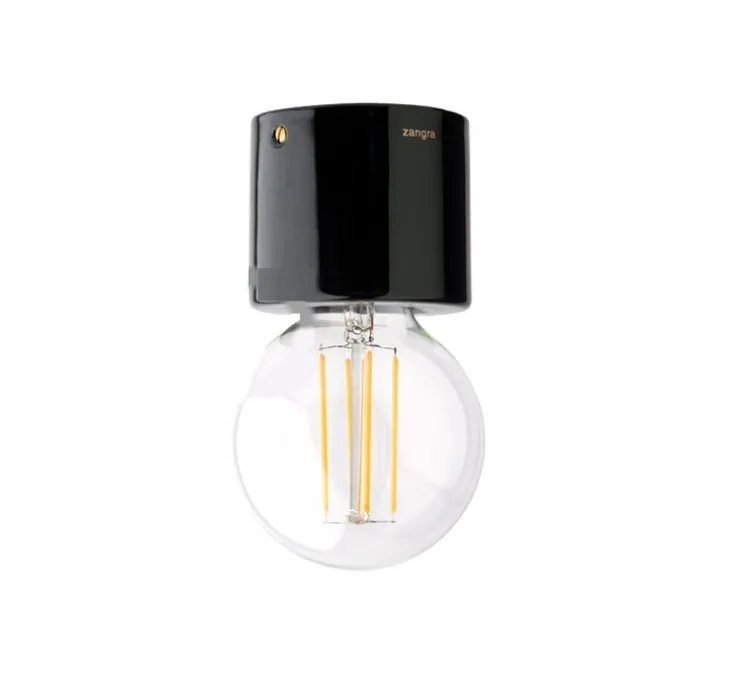 Vendu sans ampoule ce plafonnier en porcelaine noire, mesure 8cm de diamètre et 7cm de haut et est équipé d’une douille E27, max 60W, 230V, IP20, entraxe de 6cm pour la fixation.