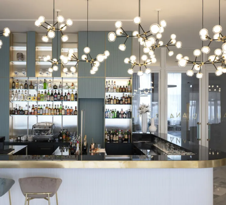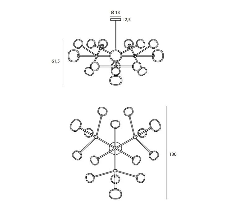 Le luminaire Nabila est composé d’une structure en métal avec rosace fait d’un bras central se divisant en seize bras, chacun se terminant par un diffuseur fait de deux éléments en verre soufflé. Collection inspirée de l’élégance et de la sophistication des années 50, Nabila est d’une opulence sobre qui s’intègre dans chaque espace, que ce soit dans une pièce de vie, une chambre ou un bureau.