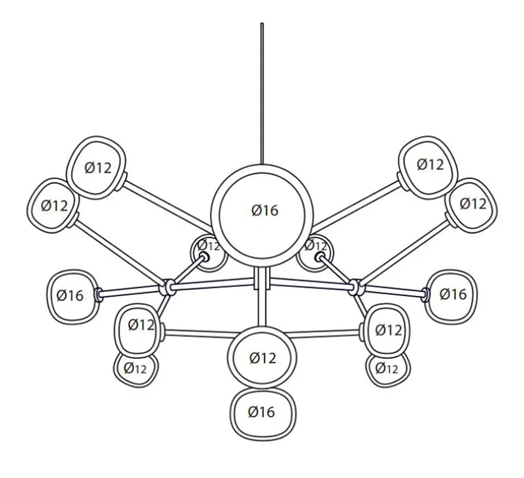 La source lumineuse n’est pas incluse (16x ampoule G9, max 10W, max H4.8cm, max Ø1.8cm, variable ou pas).