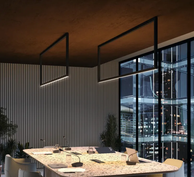 Composé de profilés extrudés en aluminium laqué noir FT, Quadro affiche une forme graphique. L’usage du rectangle confère à l’espace une sensation d’ordre et de rigueur, idéale pour des intérieurs modernes, minimalistes ou professionnels. Son design linéaire s’intègre naturellement dans un salon, un bureau ou une salle de réunion, apportant une touche architecturale forte et maîtrisée.