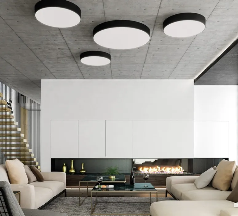 Ce plafonnier circulaire de 60 cm de diamètre est équipé d’un module LED intégré de 50W, offrant un flux lumineux de 5750 lumens. Avec une température de couleur de 4000K, il diffuse une lumière blanche neutre, idéale pour les environnements professionnels ou résidentiels nécessitant un éclairage fonctionnel et homogène.