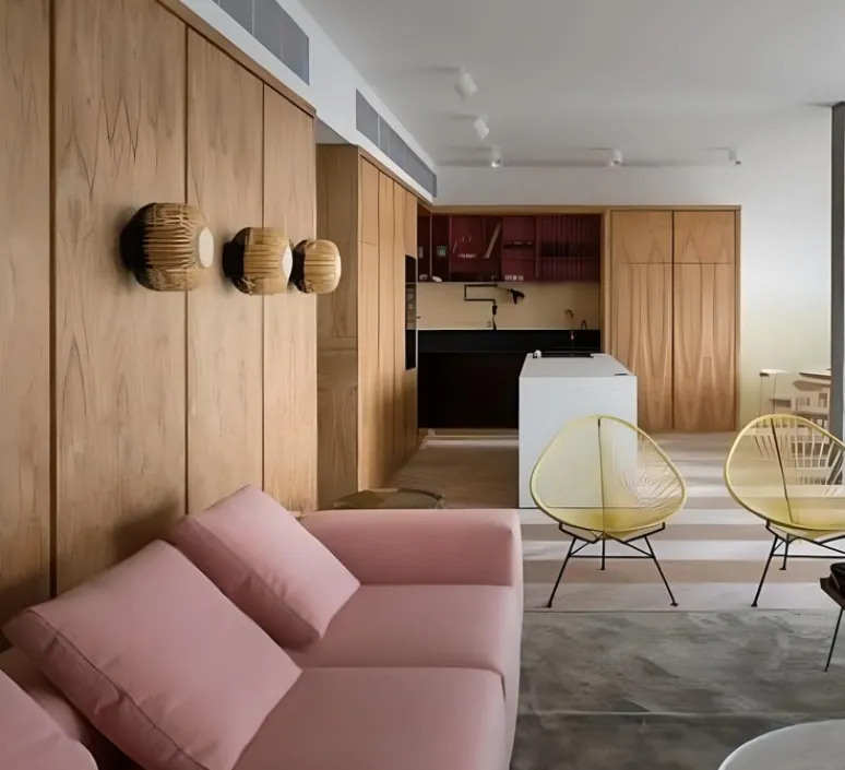 Cette lumière filtrée permet une atmosphère chaleureuse et conviviale, ainsi que de fines ombres projetées aux murs grâce à sa forme cylindrique et légère.