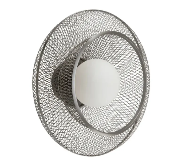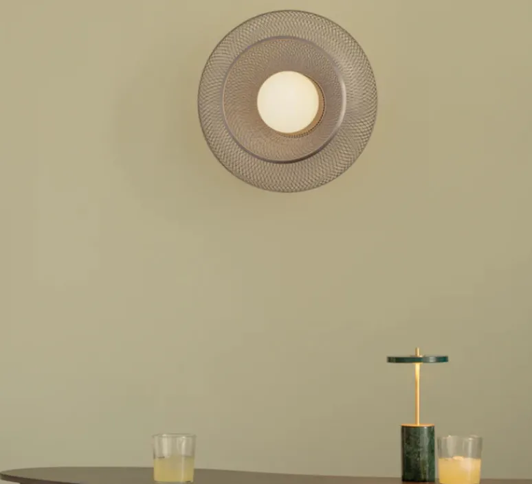 Le même maillage en acier caractéristique que celui de la cage compose l’ensemble du luminaire. Le bouclier en acier de l’abat-jour Faraday capte parfaitement la lumière du globe en verre opale et crée une lumière ambiante envoûtante.