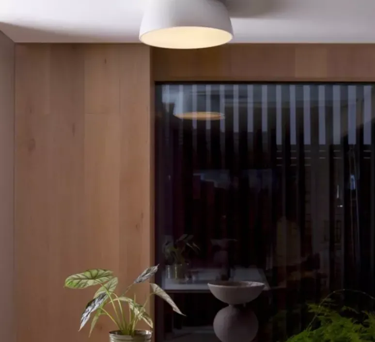 Le plafonnier Taiko est suffisamment polyvalent pour être utilisé dans une chambre d’hôtel ou dans un couloir par exemple.