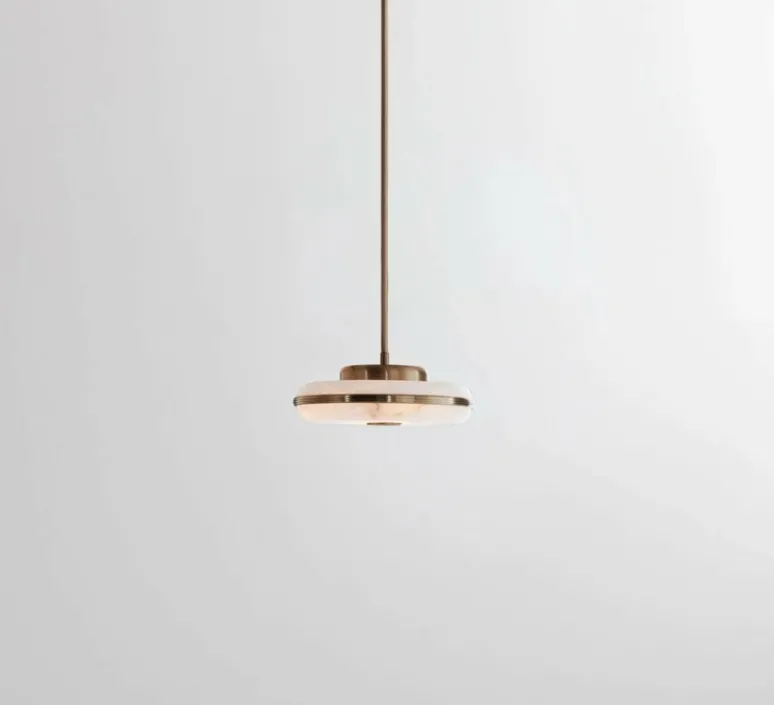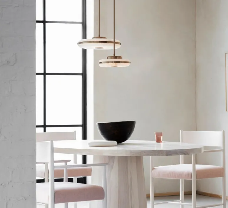 Les suspensions Beran sont disponibles en 2 tailles 26 cm et 36 cm de diamètre ainsi que 4 finitions, laiton brossé, laiton antique, bronze sombre et nickel satiné.