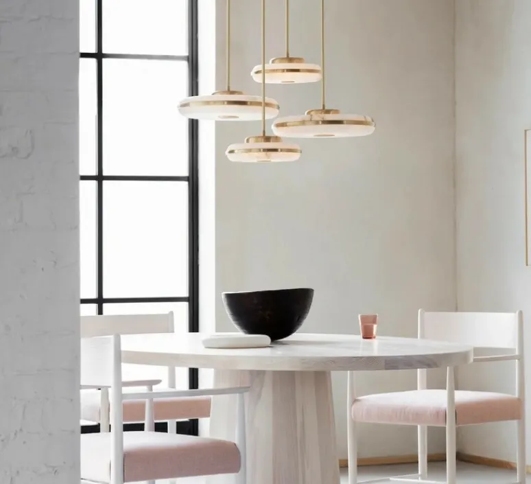 Les suspensions Beran sont disponibles en 2 tailles 26 cm et 36 cm de diamètre ainsi que 4 finitions, laiton brossé, laiton antique, bronze sombre et nickel satiné.