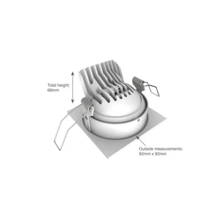 Titan mesure 6,8 cm de hauteur et 9,2 cm de long. Il est équipé d’un module LED diffusant une lumière chaude de 2700K et 1100lm. Nous préconisons une hauteur de 2cm pour le faux plafond afin d’installer confortablement ce spot.