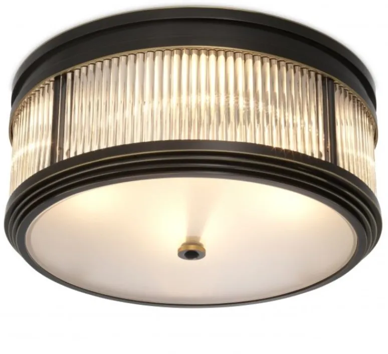L’élégant Rousseau diffuse une agréable lumière ambiante filtrée par le fond en verre dépoli, et crée ainsi une atmosphère apaisante et confortable. Son cadre à tambour est composé de tubes en verre transparent qui lui donnent un bel effet étincelant. Ce luminaire à la finition bronze sera parfait sur un plafond bas.