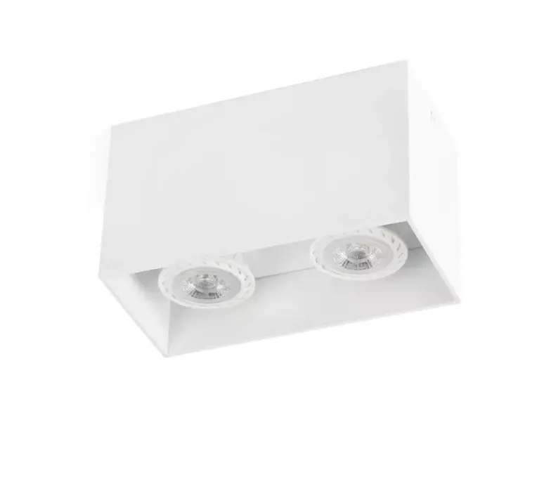 Le plafonnier Tecto mesure 16,5cm de longueur, 9,5cm de hauteur et 8,2cm de profondeur. Les deux ampoules GU10 d’une puissance maximale de 8W chacune ne sont pas fournies mais sont recommandées pour le bon fonctionnement de votre luminaire. Non dimmable. Driver non requis.