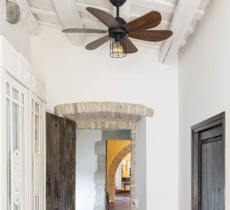 La fixation du ventilateur au plafond est sur rotule. Le ventilateur Chicago mesure 90.8cm de longueur, 46.2cm de hauteur et pèse 5.90 kg. La source lumineuse n’est pas incluse (1 X E27 60W) .