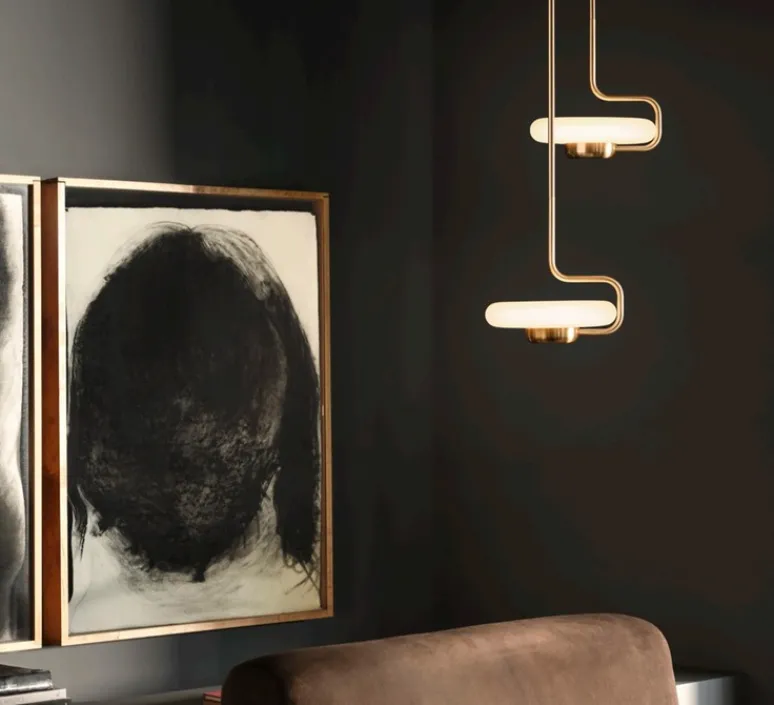Sa silhouette longiligne trace une présence discrète mais marquante dans l’espace. Suspendue avec légèreté, la structure en métal peint laiton contraste avec le diffuseur en verre opalin pour offrir une lecture visuelle équilibrée. Grâce à ses deux tiges interchangeables incluses, Tratto s’adapte à différentes hauteurs de plafond (70 cm ou 110 cm), et trouve naturellement sa place dans une entrée, un couloir ou au-dessus d’un coin lecture.