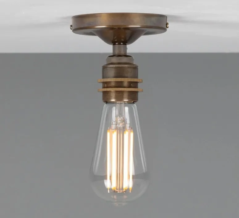 Avec son fini en laiton antique, ce plafonnier se marie parfaitement avec des intérieurs industriels ou minimalistes. Son design compact (Ø10cm, H8,5cm) est idéal pour les petits espaces, où il diffuse une lumière douce et agréable.