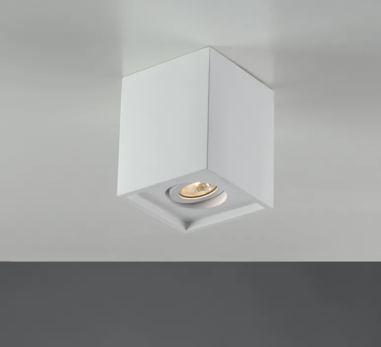 Le plafonnier en plâtre Zoé Square de forme cubique habille votre plafond avec esthétisme. Le luminaire émet une lumière directe vers le bas, avec une possibilité d’orienter la source lumineuse avec son réflecteur 15°. Ainsi le plafonnier créé un éclairage directionnel idéal dans les passages tels que les couloirs, les entrées et les pièces à vivre telles que les cuisines ou les bureaux. Ce plafonnier est parfait pour tous les environnements et styles d’intérieur comme pour les lieux publics comme des locaux commerciaux.