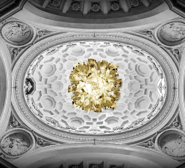 La maison italienne Slamp présente le plafonnier Veli couture designée par le grand Adriano Rachele.