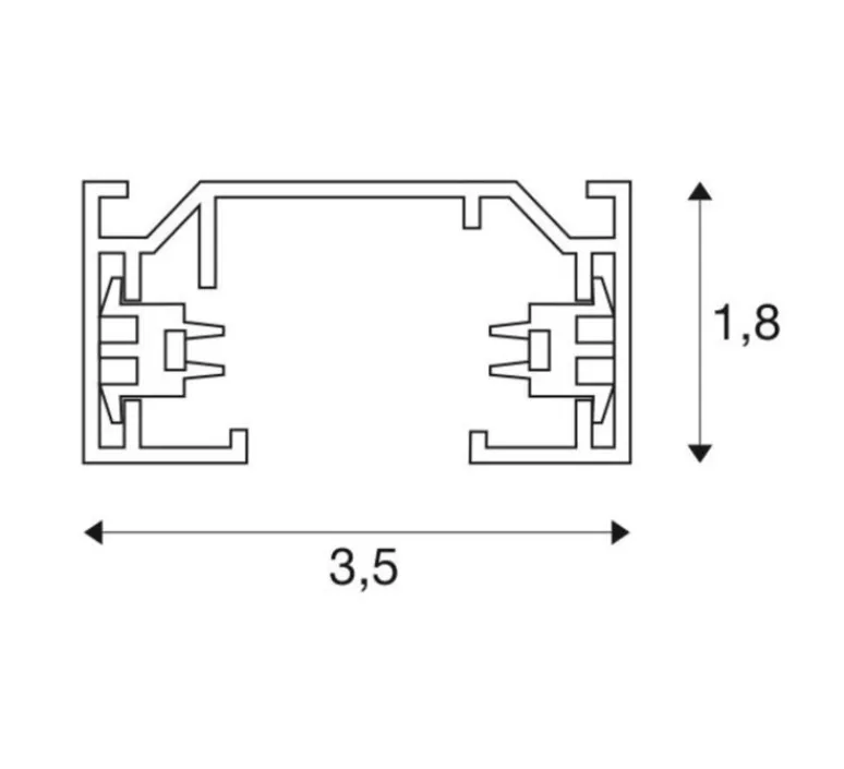 Un rail porteur en aluminium du système de rail monophasé 230V en saillie. L’installation peut s’effectuer directement au mur ou au plafond en utilisant les trous pré-percés du profil.