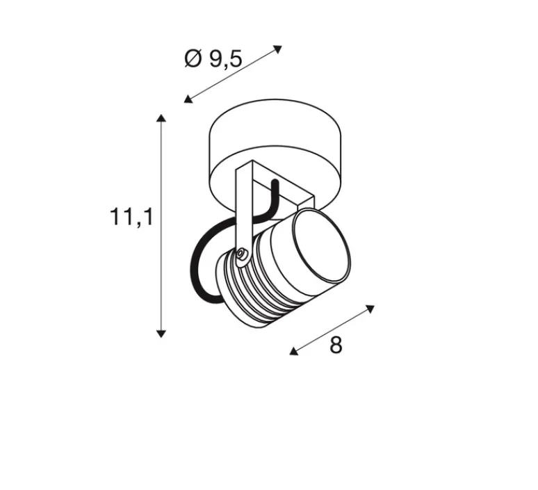 Le spot mesure 11,1 cm de hauteur, 8 cm de longueur et 6 cm de diamètre.