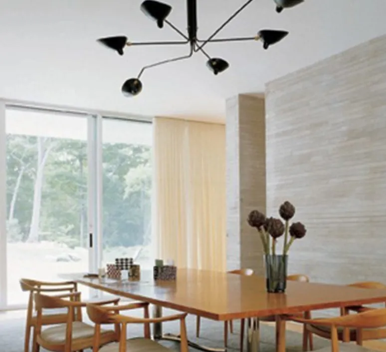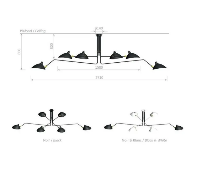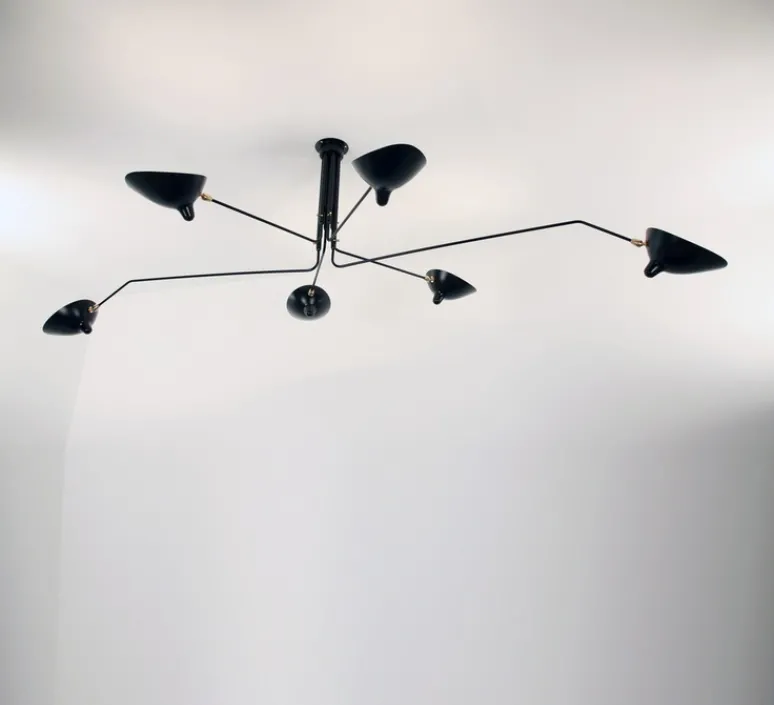L’intemporel plafonnier à 6 bras pivotants Mouille de coloris noir a été dessiné en 1958 par un des plus grands designers de luminaires du 20ème, Serge Mouille : une véritable icône de design qui habille votre salon, bureau, chambre, cuisine, couloir avec élégance…Un grand classique de la décoration contemporaine qui ne passe pas inaperçu, le modèle 6 bras est le plus grand des lustres de la collection Serge Mouille.
