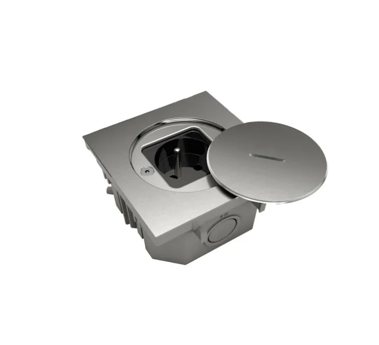 La marque Modelec présente la collection Bubox Line avec la prise de sol x1 en inox brossé.